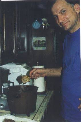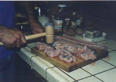 After Jared skinned and cleaned him, I started the preparation for deep fried rattlesnake with a lemon butter and parsley sauce.